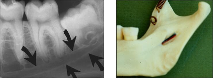 - Inferior border of mandible is the lower most part of the mandible. Appears as dense broad radiopaque band of bone.