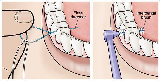 Soft-bristle toothbrush, small heads are preferable as they can reach all areas of the mouth easily.