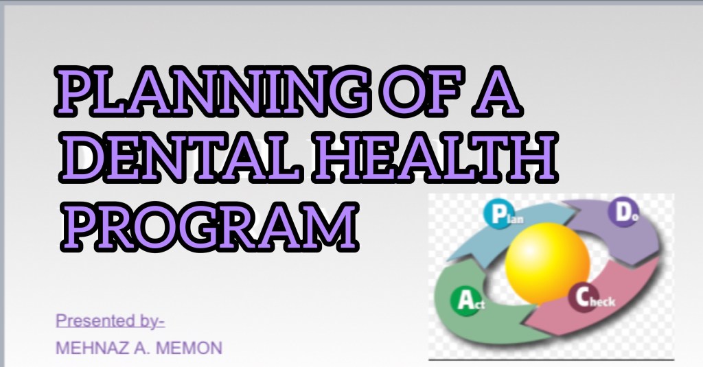 Public Health Dentistry PLANNING OF A DENTAL HEALTH PROGRAM July 8, 2020July 21, 2020 Dr.MehnazLeave a comment Types of Health PlanningDentowesome 2020@dr.mehnaz🖊 References: Textbook of Public Health Dentistry-Sober Peter(5th Edition); Random google images Share this:Tweet Share on Telegram (Opens in new window) Telegram Share on WhatsApp (Opens in new window) WhatsApp Email a link to a friend (Opens in new window) Email Like Loading... Related
