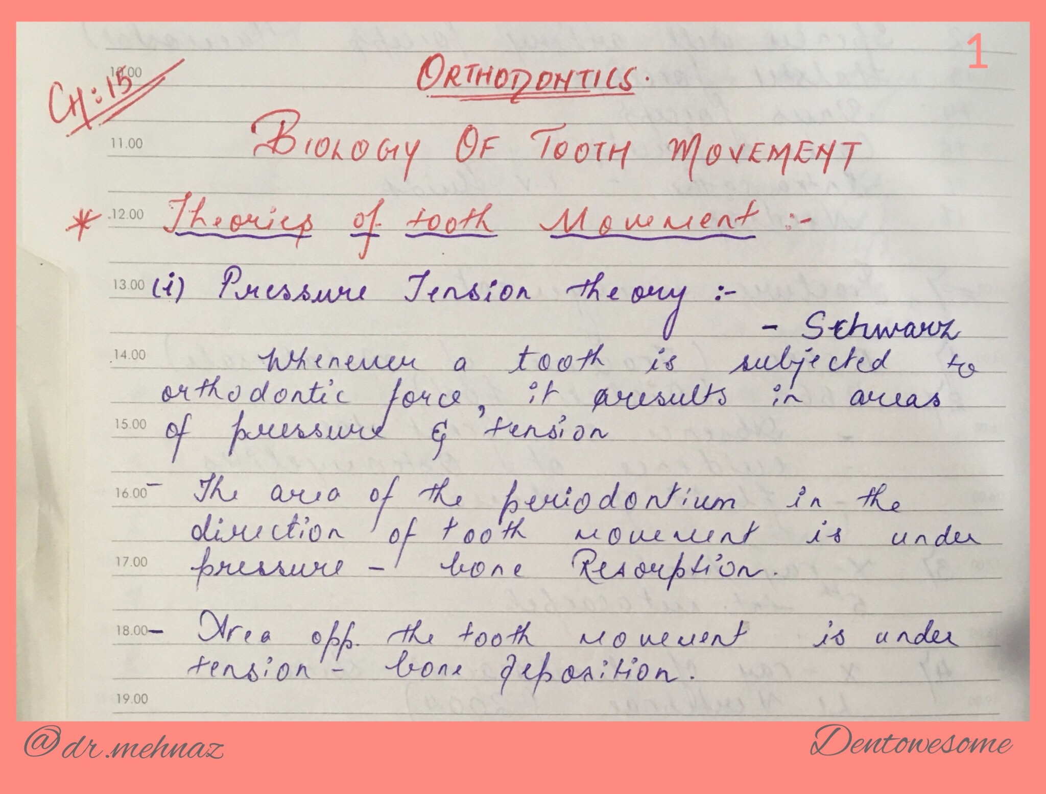 orthodontics BIOLOGY OF TOOTH MOVEMENT July 18, 2020January 8, 2021 Dr.MehnazLeave a comment 🔻 Theories of Tooth Movement: Pressure tension theory Image source: ResearchGate Fluid dynamic theory Bone bending & Peizoelectric theory References: Textbook of Orthodontics The Art and Science 6th Edition By Bhalajhi! Share this:Tweet Click to share on Telegram (Opens in new window) Telegram Click to share on WhatsApp (Opens in new window) WhatsApp Click to email a link to a friend (Opens in new window) Email Like Loading... Related Pages: 1 2 3