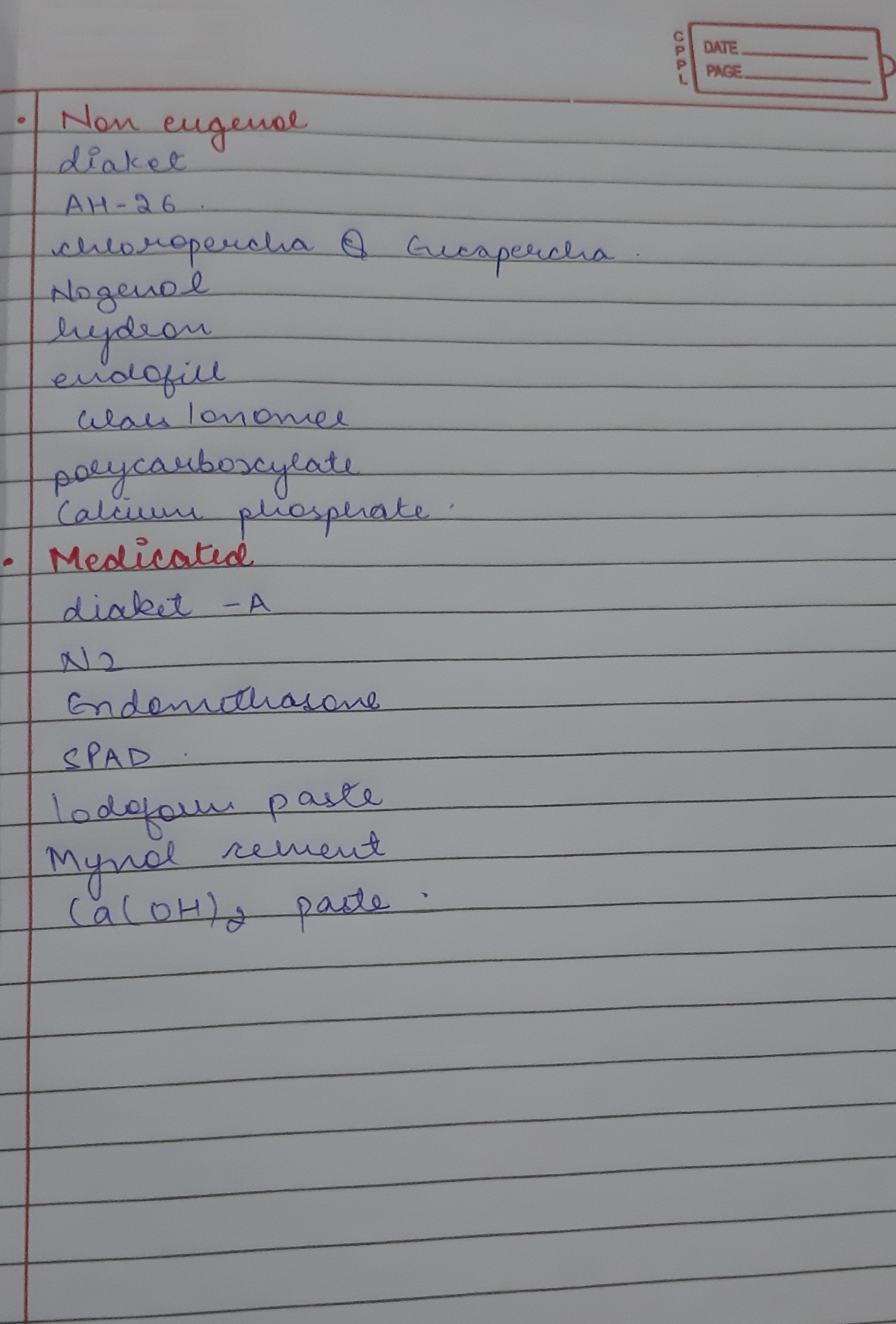 Conservative Dentistry And Endodontics Classifcation of obturating materials and sealers July 18, 2020July 19, 2020 ashtinder0224Leave a comment References: GROSSMAN TEXTBOOK Share this:Tweet Share on Telegram (Opens in new window) Telegram Share on WhatsApp (Opens in new window) WhatsApp Email a link to a friend (Opens in new window) Email Like Loading... Related