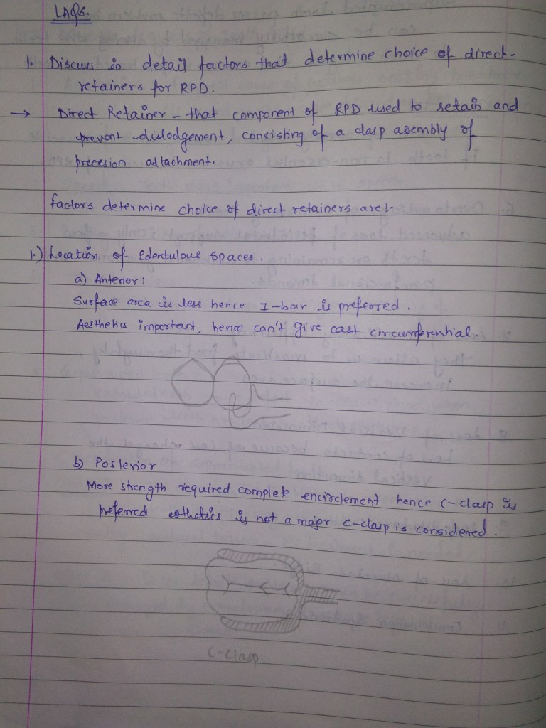 prosthodontics FACTORS FOR CHOICE OF DIRECT RETAINER I July 24, 2020 SanjanaLeave a comment Sanjana Agrawal Dentowesome 2020 Sanjana Agrawal Dentowesome 2020 Source Rangarajan textbook Share this:Tweet Share on Telegram (Opens in new window) Telegram Share on WhatsApp (Opens in new window) WhatsApp Email a link to a friend (Opens in new window) Email Like Loading... Related