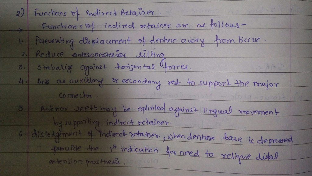 prosthodontics FUNCTIONS OF INDIRECT RETAINER July 25, 2020 SanjanaLeave a comment Sanjana Agrawal Dentowesome 2020 Source Rangarajan textbook Share this:Tweet Click to share on Telegram (Opens in new window) Telegram Click to share on WhatsApp (Opens in new window) WhatsApp Click to email a link to a friend (Opens in new window) Email Like Loading... Related