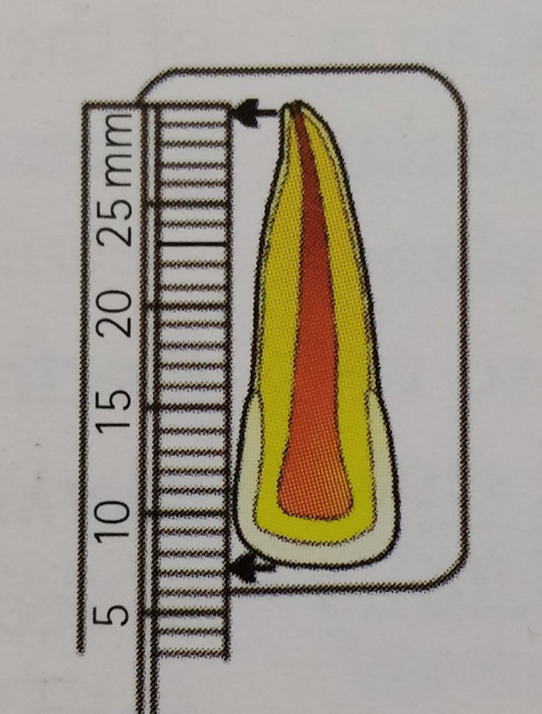 - Short of the radiographic apex by more than 1.0 mm – then add this value to the earlier estimated length and adjust the stopper on diagnostic instrument accordingly.