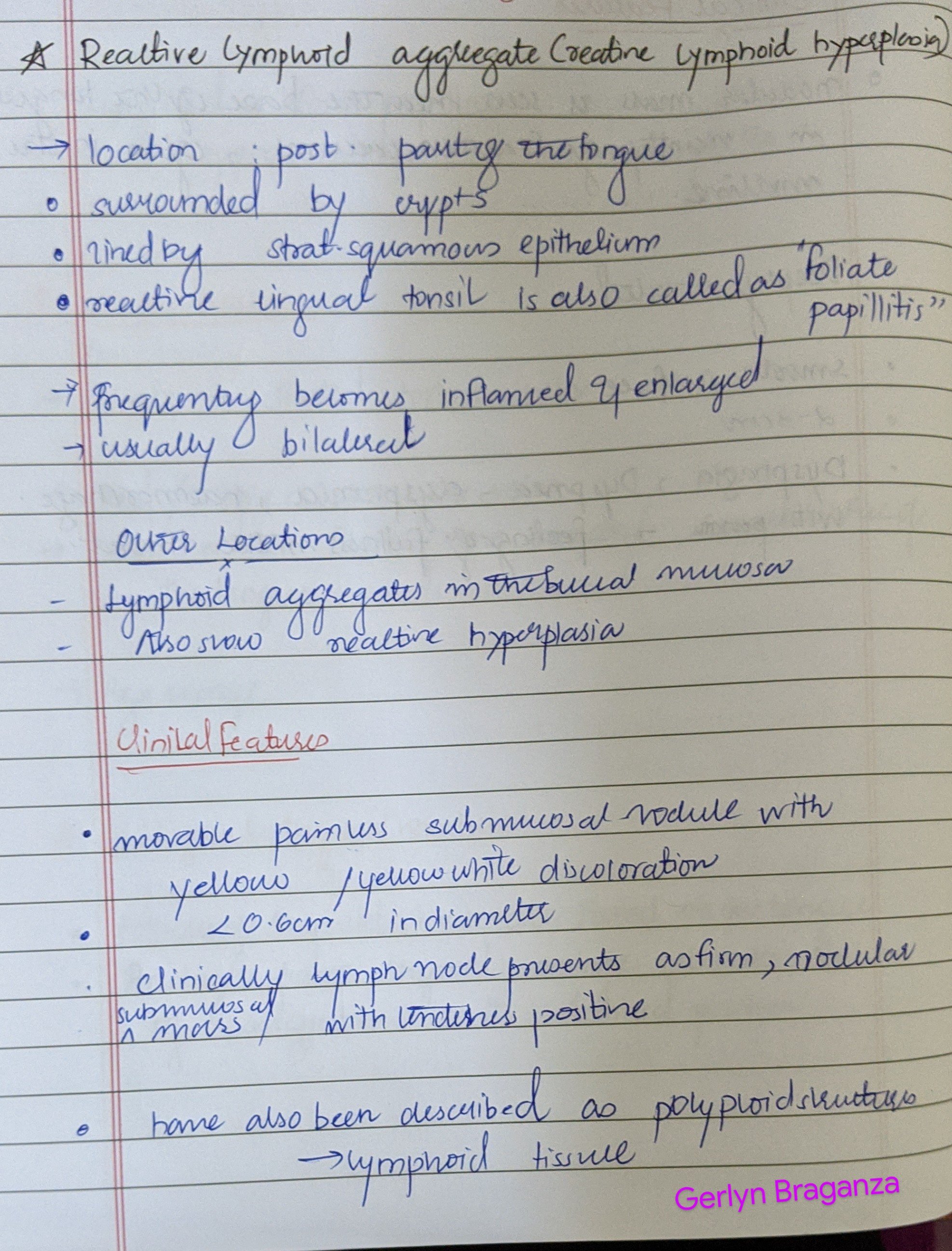 Oral Pathology Reactive lymphoid aggregate September 7, 2020September 7, 2020 Gerlyn BraganzaLeave a comment Also called as reactive lymphoid hyperplasia Waldeyers ring Source – textbook of oral pathology Shafers and Google images Share this:Tweet Click to share on Telegram (Opens in new window) Telegram Click to share on WhatsApp (Opens in new window) WhatsApp Click to email a link to a friend (Opens in new window) Email Like Loading... Related