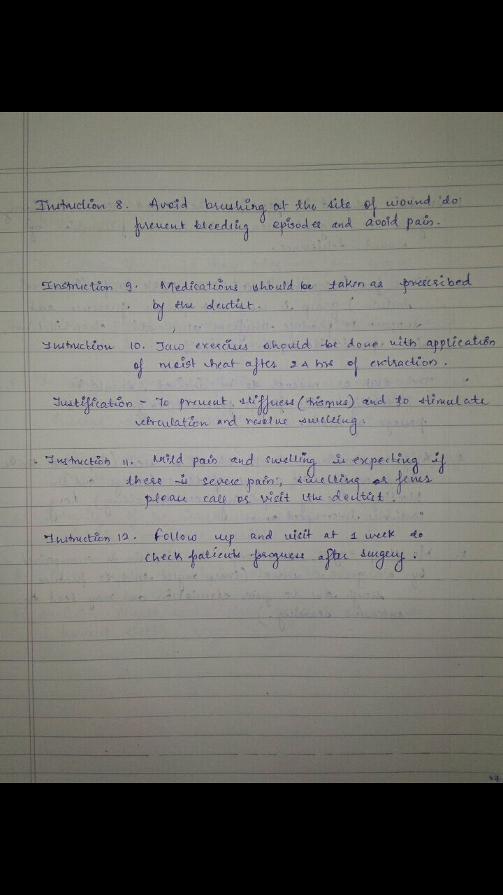 Oral And Maxillofacial Surgery POST OPERATIVE INSTRUCTIONS October 26, 2020 SanjanaLeave a comment Written by Sanjana Agrawal Dentowesome 2020 Source Borley textbook Share this:Tweet Share on Telegram (Opens in new window) Telegram Share on WhatsApp (Opens in new window) WhatsApp Email a link to a friend (Opens in new window) Email Like Loading... Related
