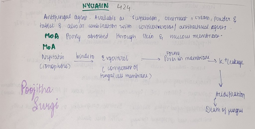 Pharmacology NYSTATIN November 23, 2020 Poojitha SurgiLeave a comment REFERENCE : Pharmacology 4th Ed: Tara V Shanbhag, Smita Shenoy Share this:Tweet Click to share on Telegram (Opens in new window) Telegram Click to share on WhatsApp (Opens in new window) WhatsApp Click to email a link to a friend (Opens in new window) Email Like Loading... Related