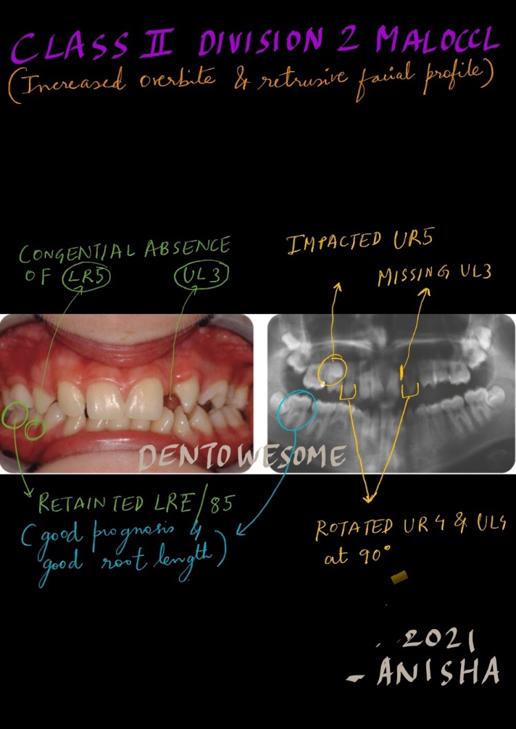 This 12-year-old female presented with a class II division 2 malocclusion on a moderate skeletal class II base with a retrusive profile and agenesis