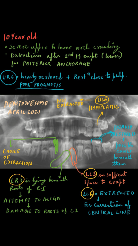 • LR3 is excluded from the arch and ectopic in position, with its crown lying beneath the roots of the lower central incisors