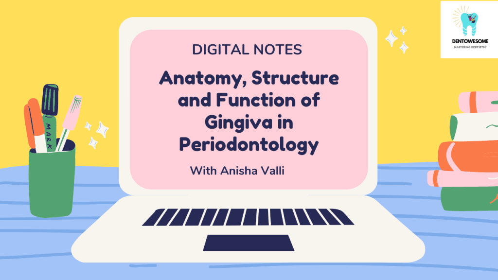 Periodontology Anatomy, Structure and Function of Gingiva in periodontology (PART ONE) May 19, 2021 Anisha ValliLeave a comment Link: https://drive.google.com/file/d/1BcOC7eVp6mHnzX3p6GBjVjTuCWDa1Bir/view?usp=sharing Share this:Tweet Click to share on Telegram (Opens in new window) Telegram Click to share on WhatsApp (Opens in new window) WhatsApp Click to email a link to a friend (Opens in new window) Email Like Loading... Related