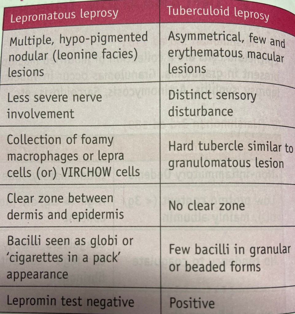 Pathology DIFFERENCE BETWEEN LEPROMATOUS AND TUBERCULOID LEPROSY May 22, 2021 SanjanaLeave a comment Dr Sanjana Agrawal Reference Pulse edition 14 Share this:Tweet Click to share on Telegram (Opens in new window) Telegram Click to share on WhatsApp (Opens in new window) WhatsApp Click to email a link to a friend (Opens in new window) Email Like Loading... Related