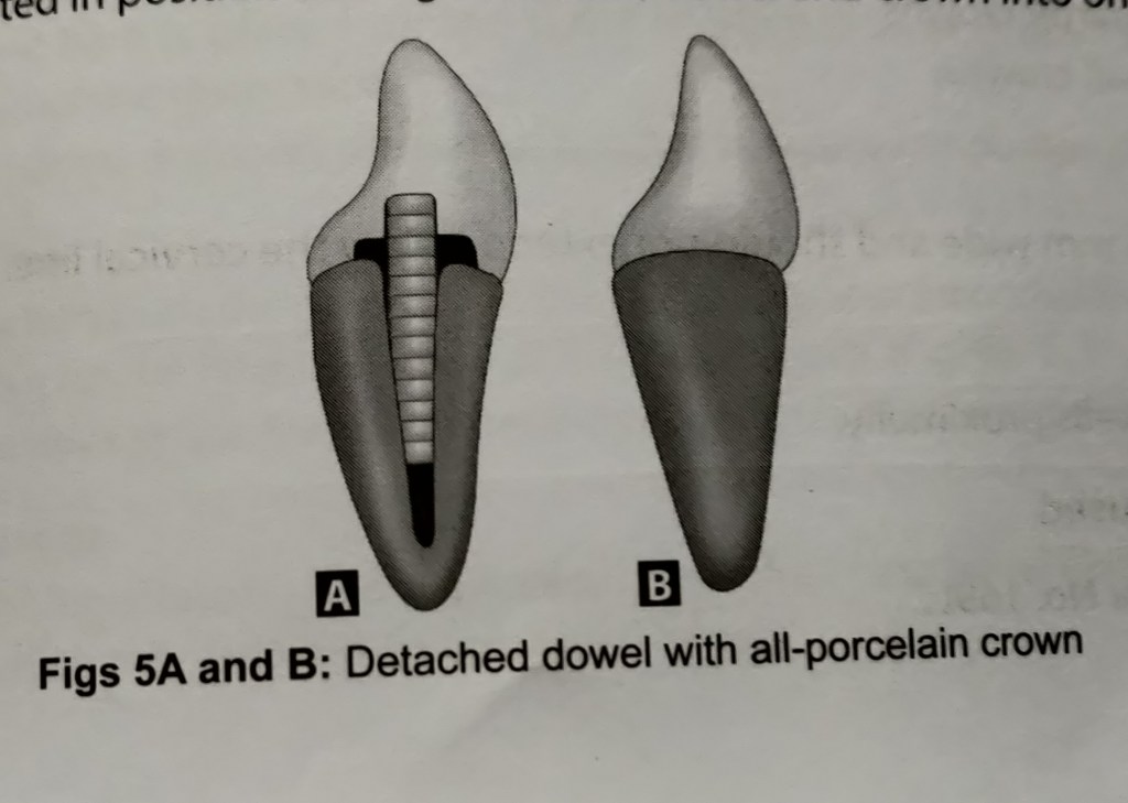 - It is cemented in position uniting the tooth, dowel and crown into one unit.
