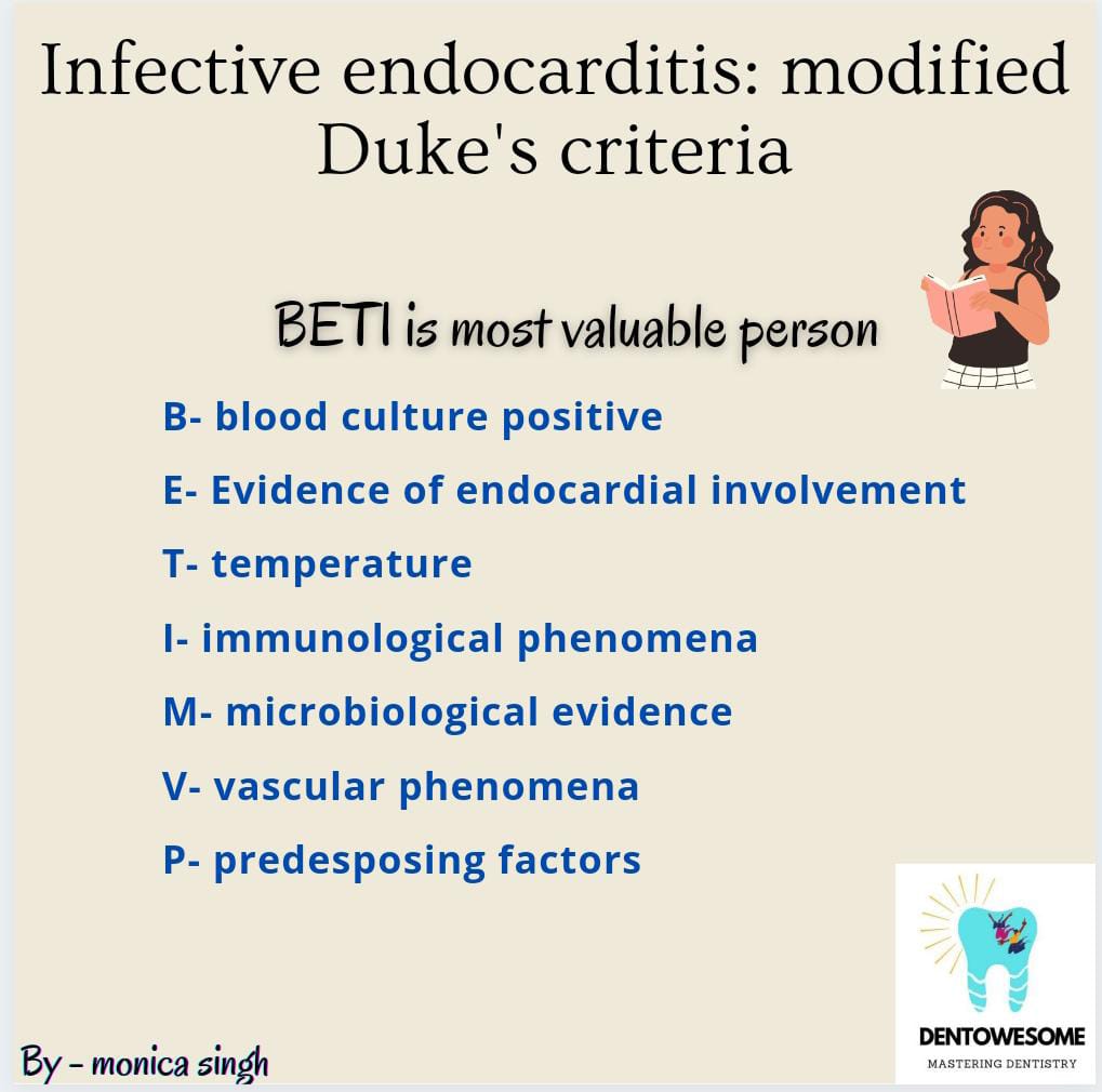 Uncategorized Mnemonic on Infective Endocarditis – Modified Duke Criteria ImageDecember 29, 2021 Anisha ValliLeave a comment Share this:Tweet Click to share on Telegram (Opens in new window) Telegram Click to share on WhatsApp (Opens in new window) WhatsApp Click to email a link to a friend (Opens in new window) Email Like Loading... Related