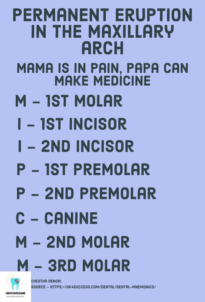 Uncategorized Mnemonic on Permanent Eruption in Maxillary Arch ImageDecember 29, 2021 Anisha ValliLeave a comment Share this:Tweet Click to share on Telegram (Opens in new window) Telegram Click to share on WhatsApp (Opens in new window) WhatsApp Click to email a link to a friend (Opens in new window) Email Like Loading... Related