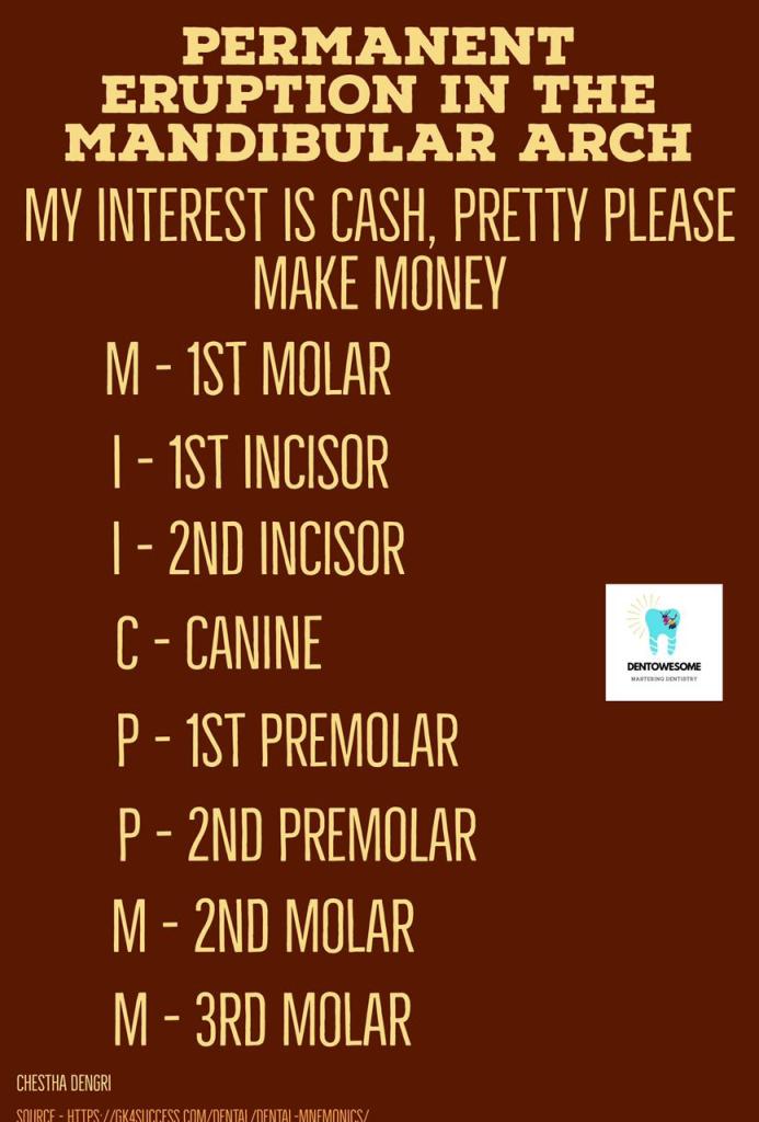Uncategorized Mnemonic on Permanent Eruption in the mandibular Arch ImageDecember 29, 2021 Anisha ValliLeave a comment Share this:Tweet Share on Telegram (Opens in new window) Telegram Share on WhatsApp (Opens in new window) WhatsApp Email a link to a friend (Opens in new window) Email Like Loading... Related