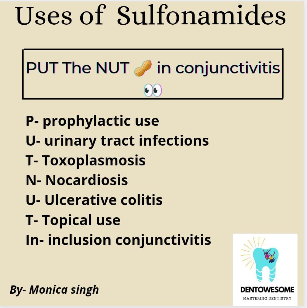 Uncategorized Mnemonic on Uses of Sulfonamides ImageDecember 29, 2021 Anisha ValliLeave a comment Share this:Tweet Click to share on Telegram (Opens in new window) Telegram Click to share on WhatsApp (Opens in new window) WhatsApp Click to email a link to a friend (Opens in new window) Email Like Loading... Related