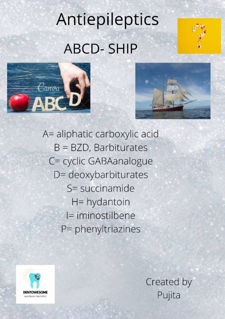 Uncategorized Mnemonic on Antiepileptics ImageDecember 30, 2021 Anisha ValliLeave a comment Share this:Tweet Click to share on Telegram (Opens in new window) Telegram Click to share on WhatsApp (Opens in new window) WhatsApp Click to email a link to a friend (Opens in new window) Email Like Loading... Related