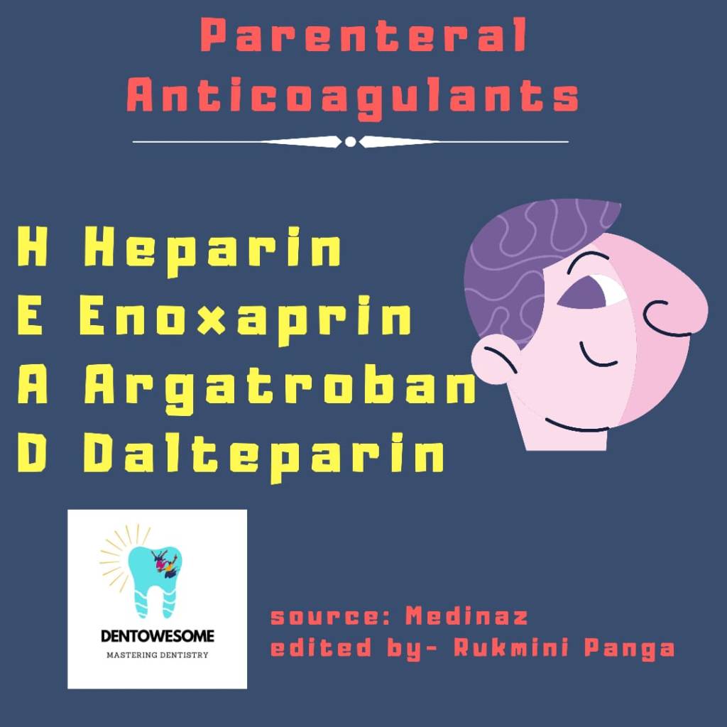 Uncategorized Mnemonic on Parenteral Anticoagulants ImageDecember 30, 2021 Anisha ValliLeave a comment Share this:Tweet Share on Telegram (Opens in new window) Telegram Share on WhatsApp (Opens in new window) WhatsApp Email a link to a friend (Opens in new window) Email Like Loading... Related