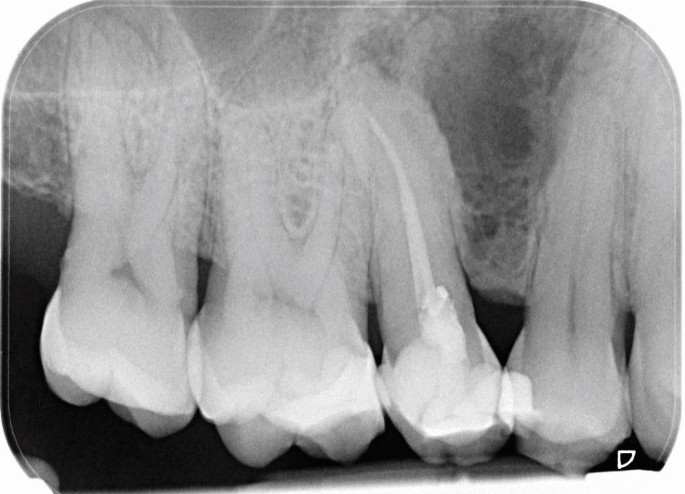 A multilocular radiolucent lesion was found in the interdental bone between the upper first and second premolars. The teeth were vital and after enucleation, the pathologist reported that the cyst had features of a developmental periodontal cyst lined by squamous epithelium with focal thickened areas.