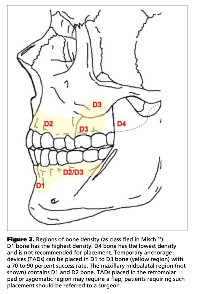 | D1 | >1250 HU | Anterior mandible, buccal shelf, midpalatal | Oak 🌳 | ✔ Best, may need pilot hole |