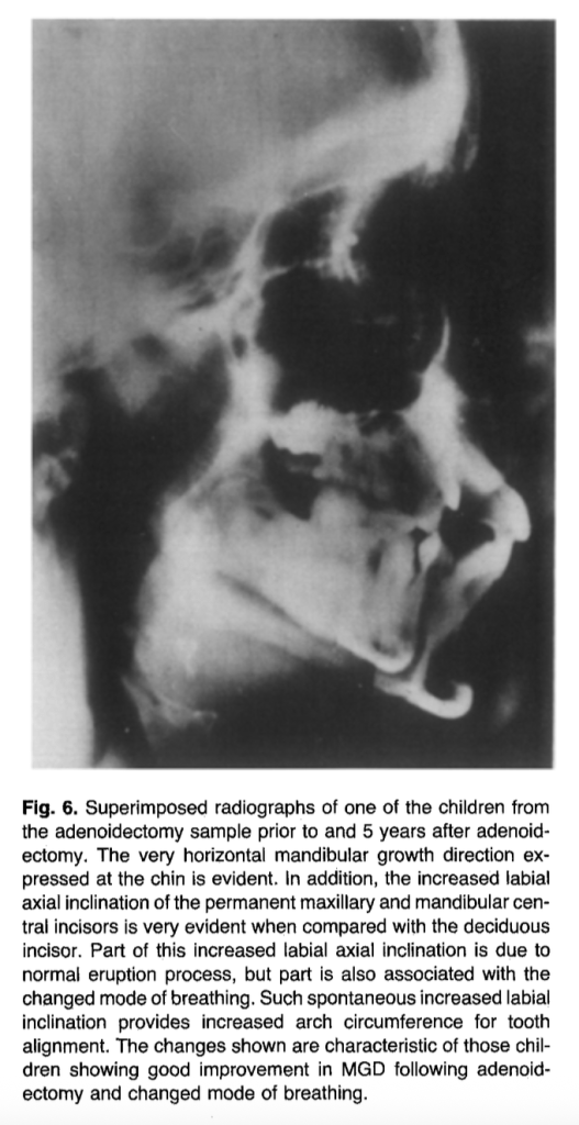 | Adenoidectomy group | 38 children (7–12 yrs) with severe nasal obstruction who changed from mouth to nasal breathing |