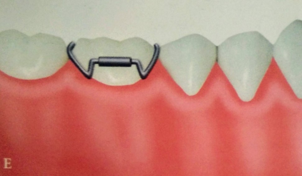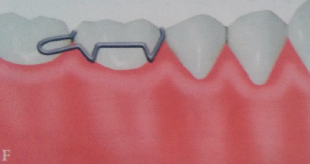 The additional arrowhead engages the proximal undercut of the adjacent tooth and is soldered on to the bridge of the Adams.