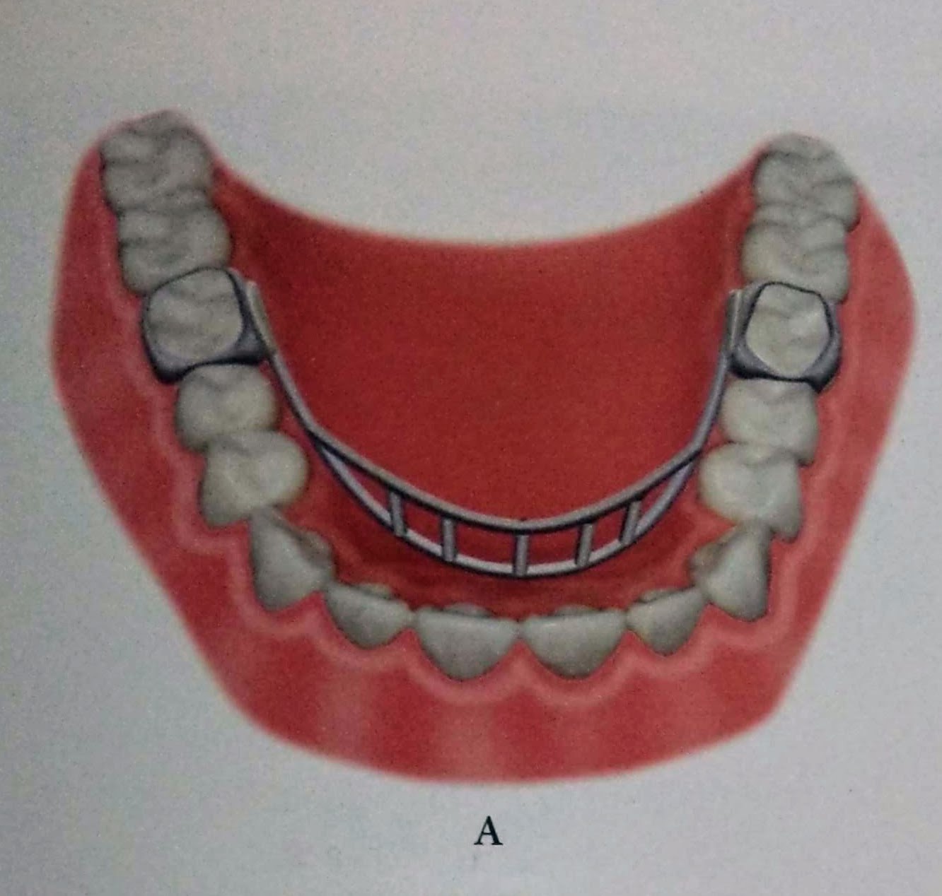FIXED HABIT BREAKER Heavy gauge stainless steel wire can be designed to form a frame, that is soldered to bands in the molars.