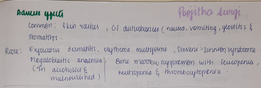 3. Other side effects : Fever, skin rashes, arthralgia, anemia, GI disturbances, psychosis and rarely convulsions.