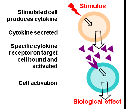 Cytokines tend to bind to high affinity receptors and the target cells and mediate their effects. Specific cytokines mediate specific reactions.
