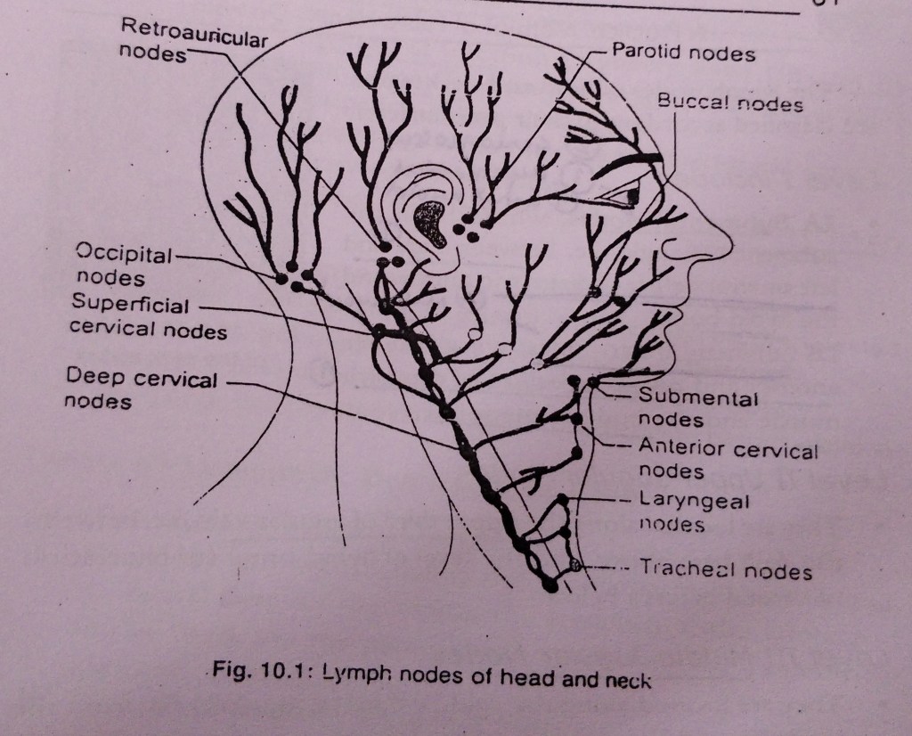- Submandibular nodes : Roll your fingers against inner surface of mandible with patients head gently tilted on one side.