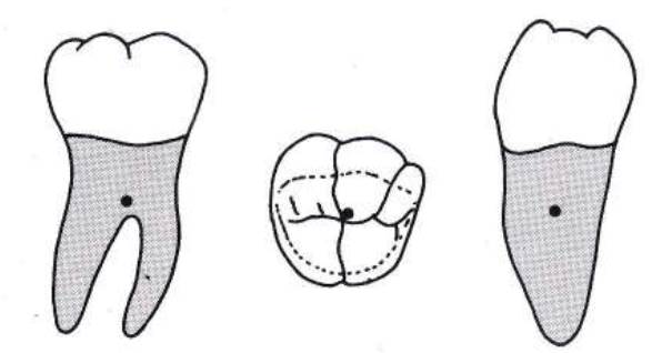 - Incisor roots move slightly distally, and molar roots move slightly mesially