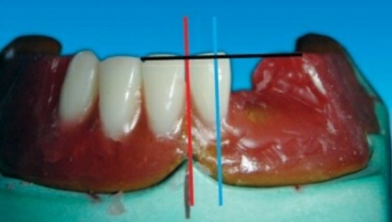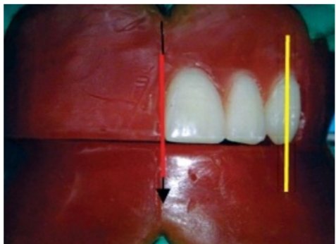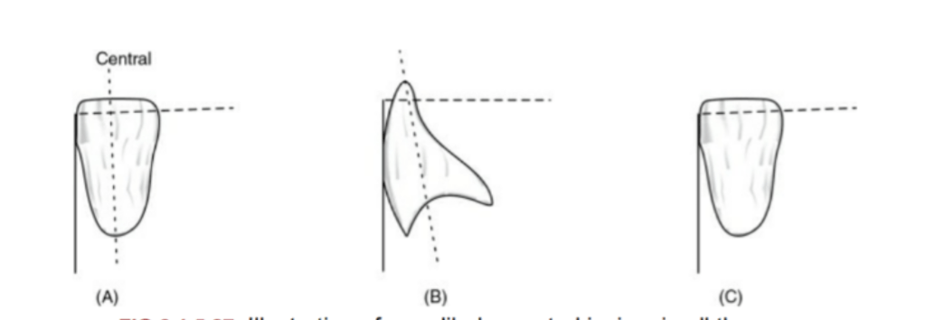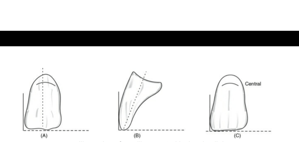 🔻The long axis of the central incisor (the blue line) is positioned parallel to the