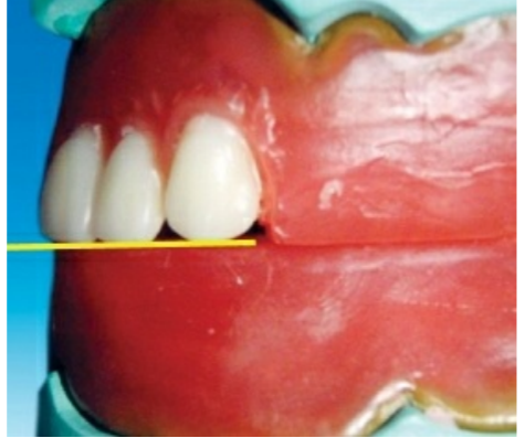 🔻The incisal edge of the maxillary central incisor is positioned in line with the