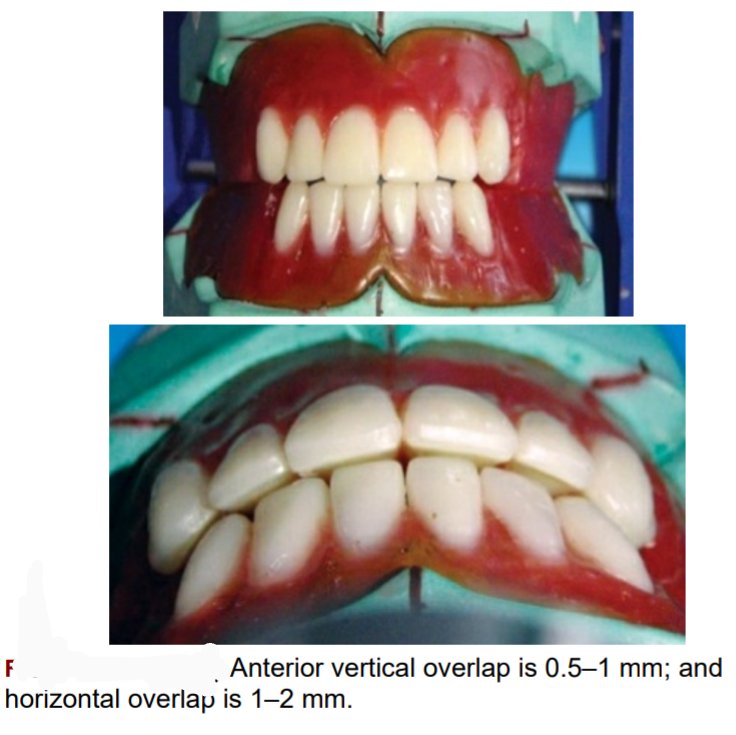 incisal edge should be 0.5–1 mm, and the horizontal overlap (over jet) between
