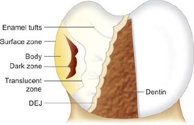 - Initial lesion is small, while rapid spread of process at DEJ & diffuse involvement of dentin produce large internal excavation.