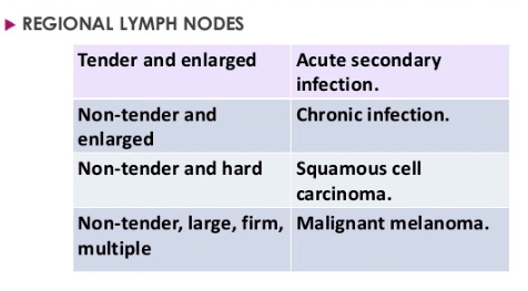 • Progression: The clinician should ask ‘has the lump changed in size since it was first noticed? Benign growths such as bony swellings grow in size very slowly and may remain static for a long period of time. If the swelling decreases in size, this suggests of an inflammatory lesion.