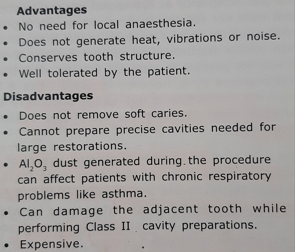Disadvantages – can cause porosities or abrade tooth surface ,in case of heavy exposure.