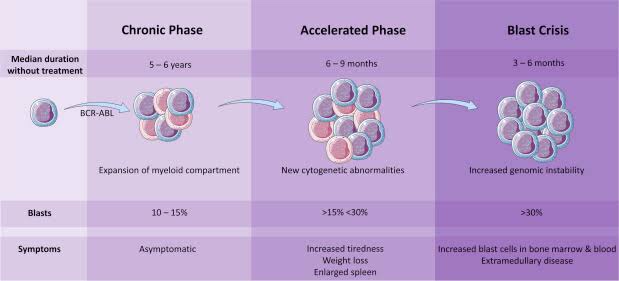 🔘 Splenectomy and splenic irradiation have been used in patients with large and painful spleens, usually in the late phase of CML. This is rarely needed in patients whose disease is well controlled.