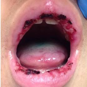 👉🏻 Oral lesions comprise of bullae/vesicle that rupture to form erosions and ultimately leave out ulcerations