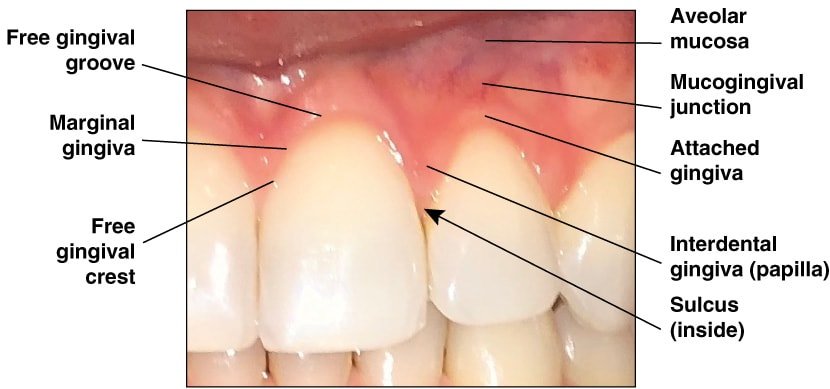The gingiva is the part of the oral mucosa that covers the alveolar processes of the jaws and surrounds the necks of the teeth.