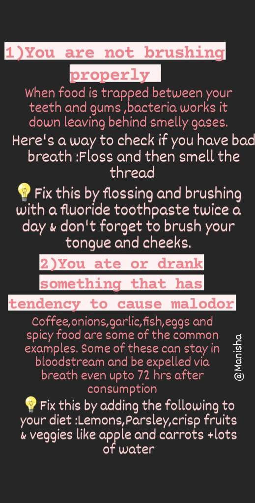 August 1st,NATIONAL ORAL HYGIENE DAY 🦷 A reminder that oral health is the door to overall health and reinforcing the fact that “Brush and floss ,before the loss.” Amidst the Covid era,where wearing a mask has become a part and parcel,many of us face the problem of “BAD BREATH” or halitosis and people often end up in temporary solutions without knowing the root cause. Here are some of the causes & remedy which might prove helpful.